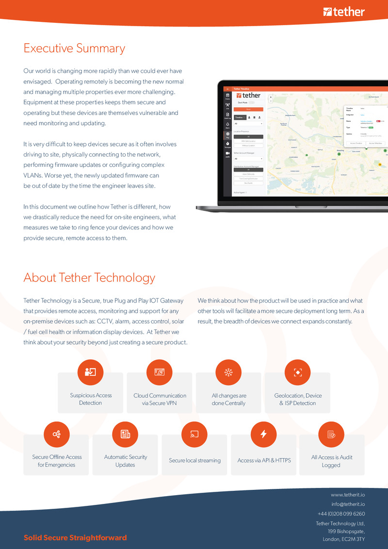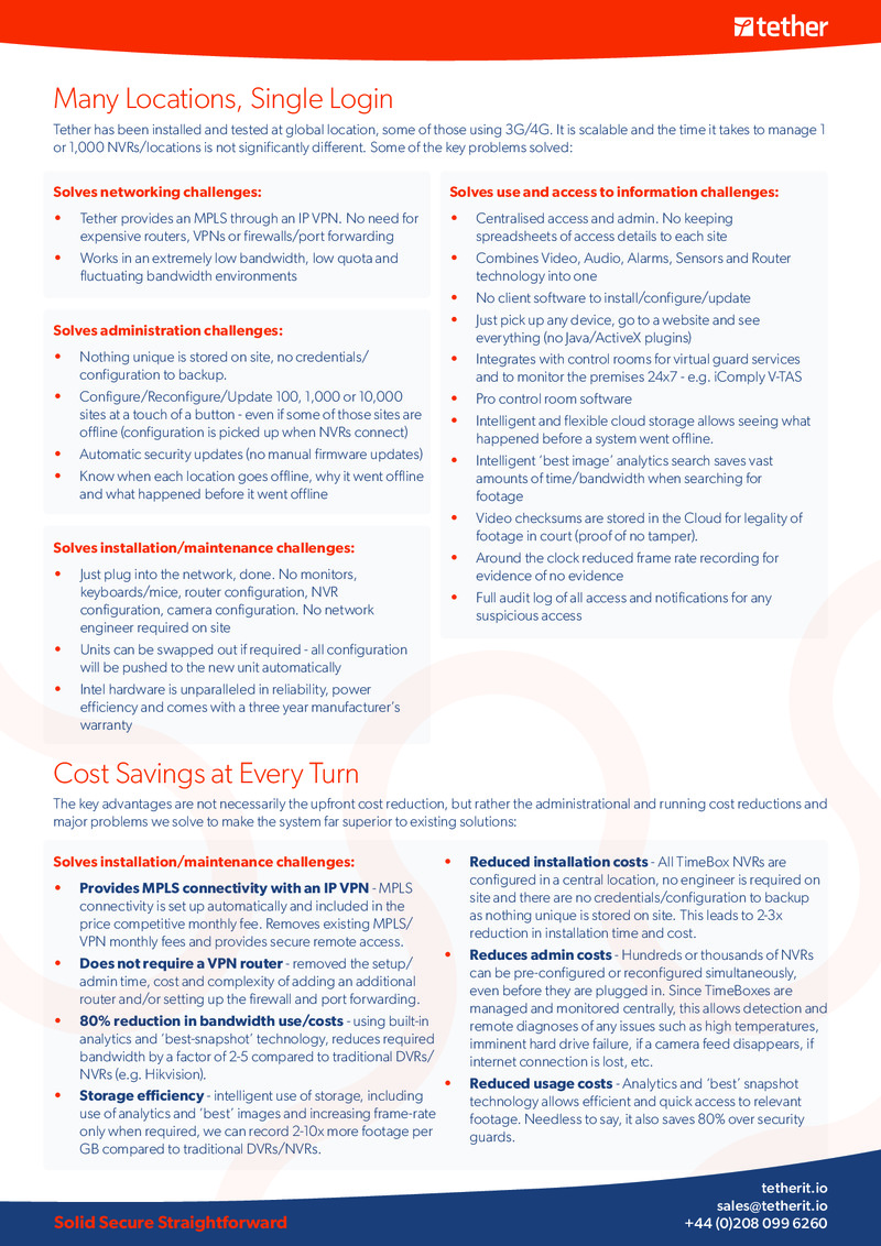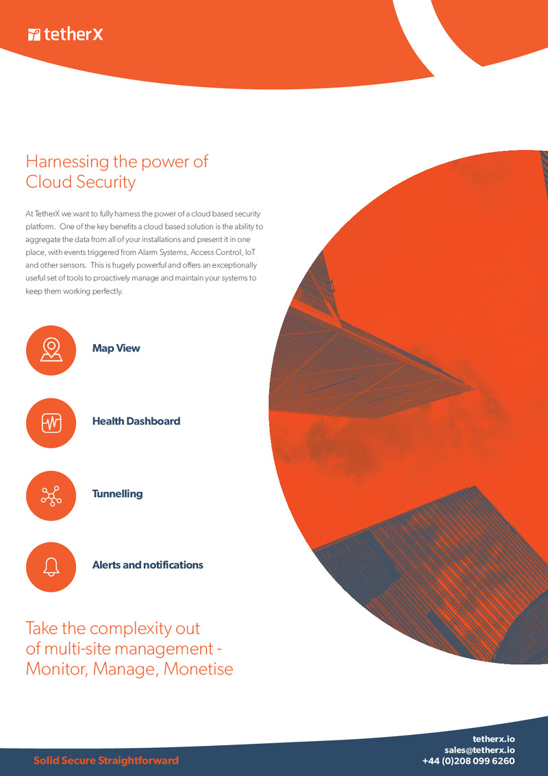 TetherX has many modules including video surveillance, access control, alarm panel integration as well as integrations to enable machine learning for video surveillance or business intelligence for alarm data.